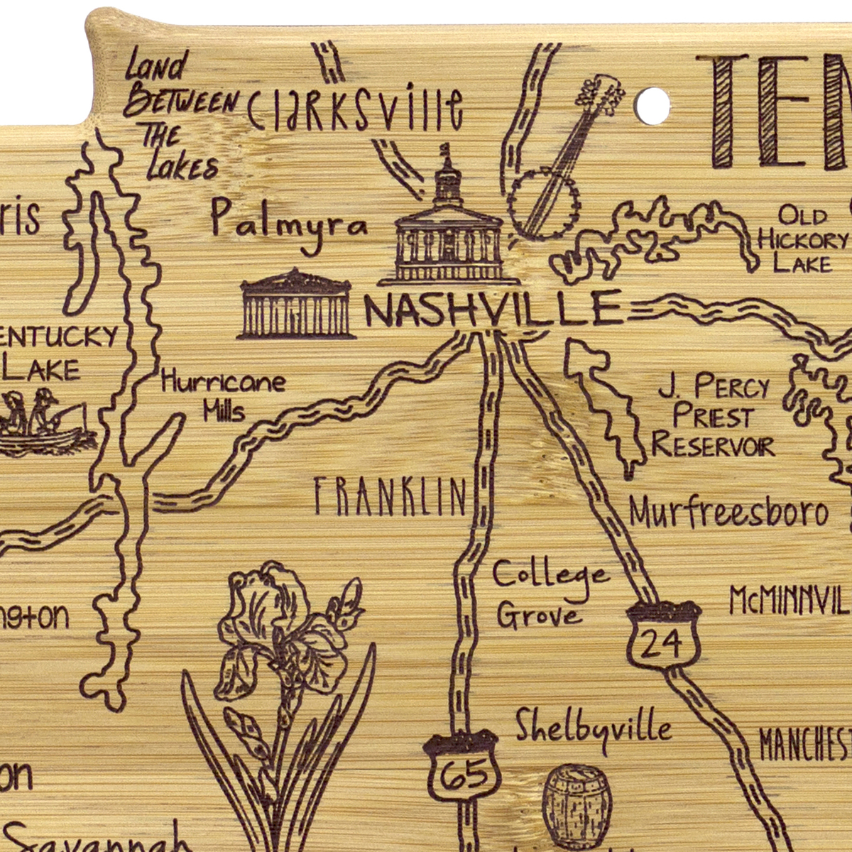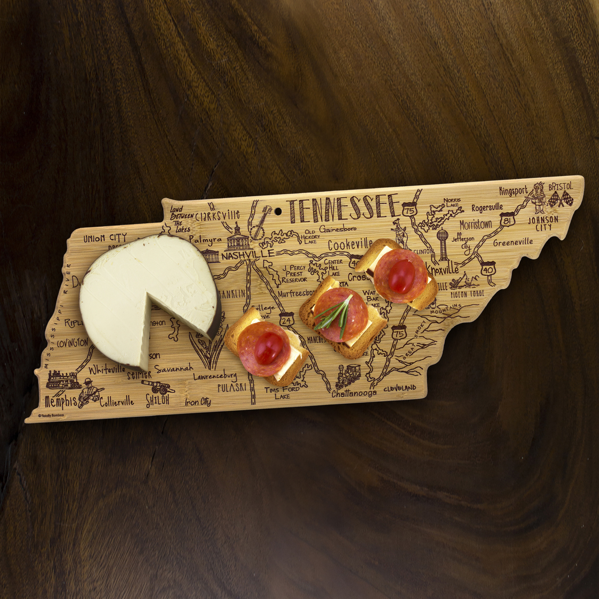 The Destination Series highlights the unique flavor and experiences of every state. The fun, laser-engraved artwork calls out the towns, places and attractions that make each place special. These versatile boards work well as a serving board, a cutting surface or hanging as wall decor with the included hang tie. The line includes every US state, the Hawaiian Islands, Mexico and several Canadian provinces. Boards can be further engraved on the back with a logo.