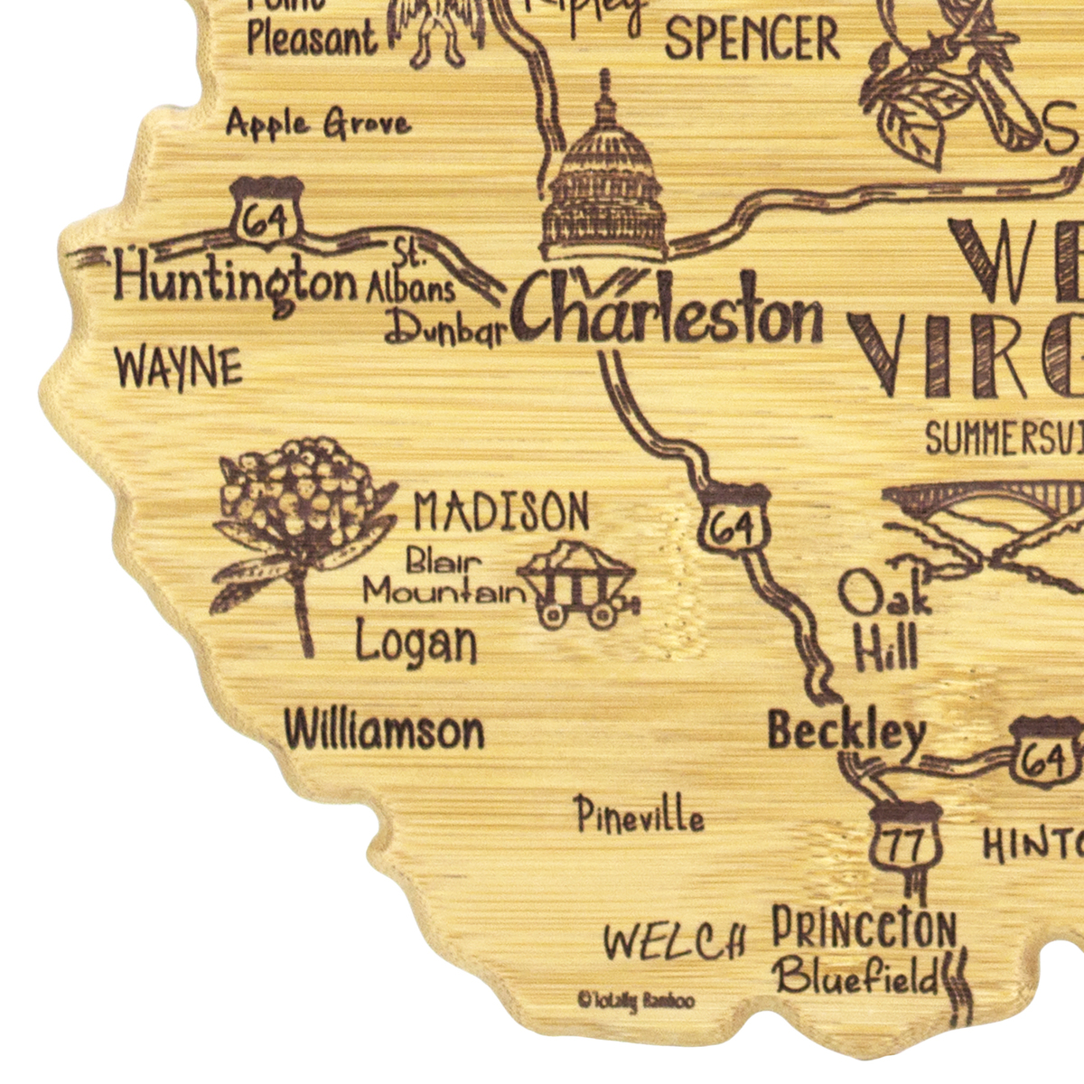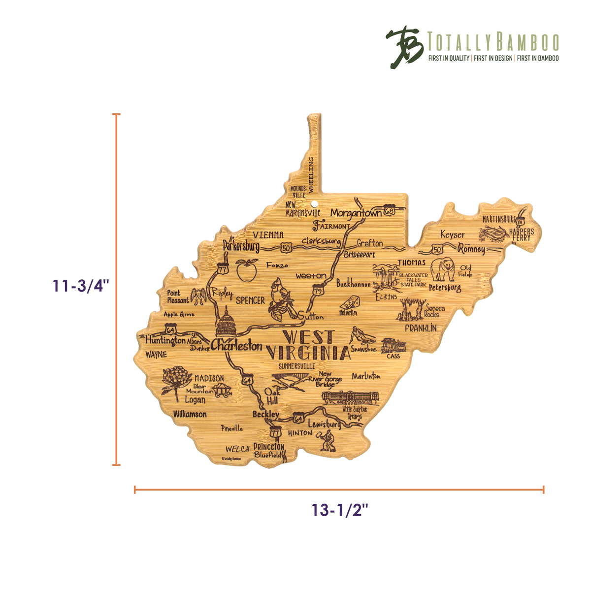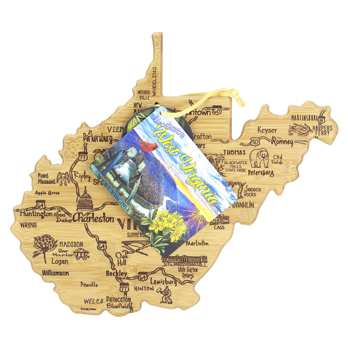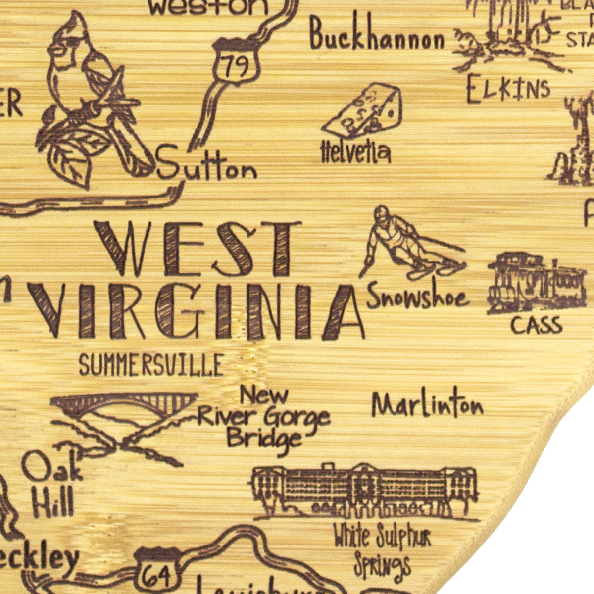 The Destination Series highlights the unique flavor and experiences of every state. The fun, laser-engraved artwork calls out the towns, places and attractions that make each place special. These versatile boards work well as a serving board, a cutting surface or hanging as wall decor with the included hang tie. The line includes every US state, the Hawaiian Islands, Mexico and several Canadian provinces. Boards can be further engraved on the back with a logo.