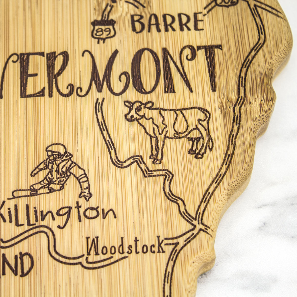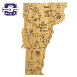 The Destination Series highlights the unique flavor and experiences of every state. The fun, laser-engraved artwork calls out the towns, places and attractions that make each place special. These versatile boards work well as a serving board, a cutting surface or hanging as wall decor with the included hang tie. The line includes every US state, the Hawaiian Islands, Mexico and several Canadian provinces. Boards can be further engraved on the back with a logo.