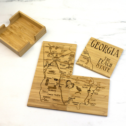 The Totally Bamboo State Puzzle Coaster Set with Case offers a natural solution for protecting tabletop. These sturdy coasters are crafted from organically-grown Moso bamboo, an environmentally-friendly material solution that quickly re-grows once harvested. Bamboo is both lightweight & durable a perfect choice for coasters! The coaster set includes a handsome case to store coasters neatly when not in use. The coasters are easy to care for as well: simply wipe them w/a damp cloth to clean.