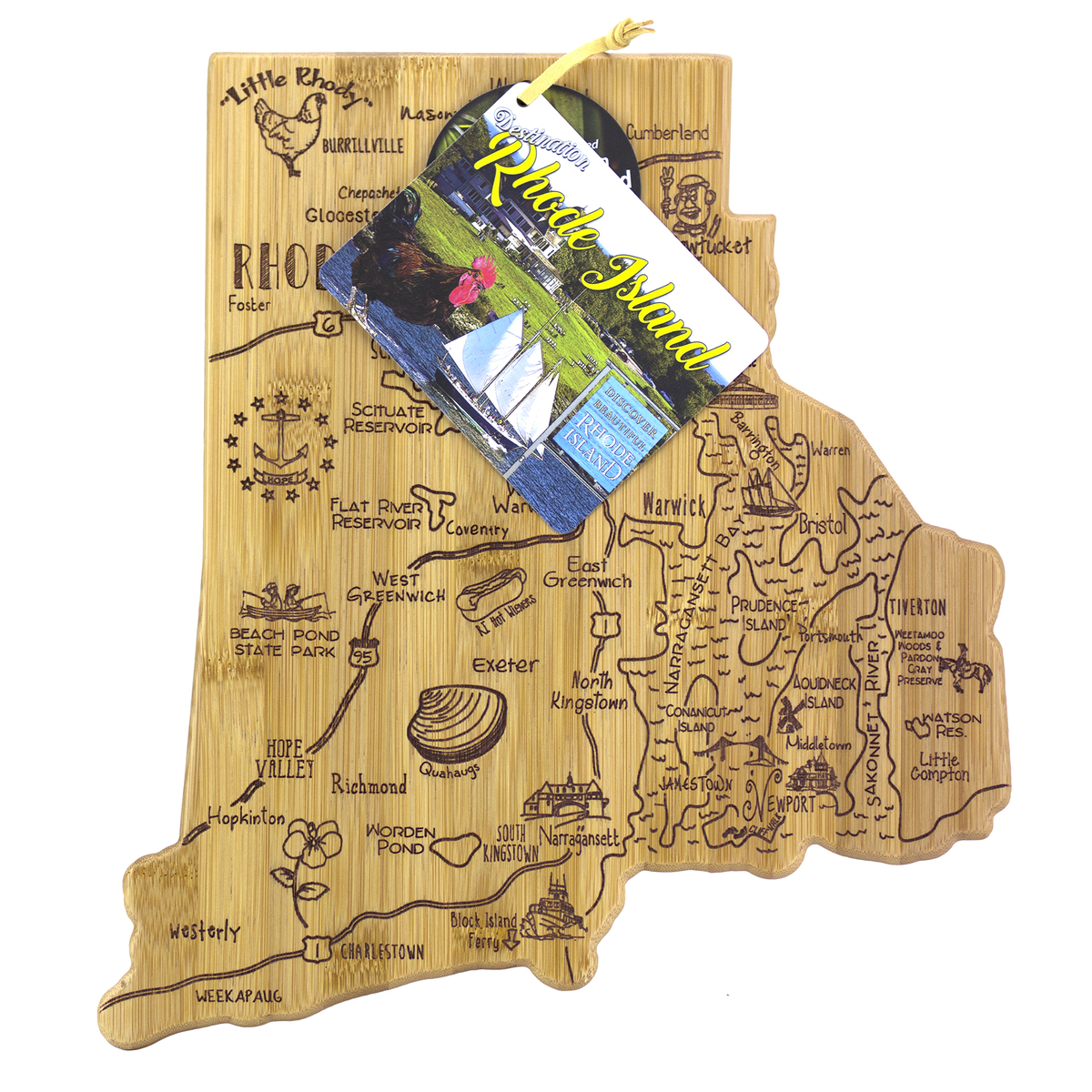 The Destination Series highlights the unique flavor and experiences of every state. The fun, laser-engraved artwork calls out the towns, places and attractions that make each place special. These versatile boards work well as a serving board, a cutting surface or hanging as wall decor with the included hang tie. The line includes every US state, the Hawaiian Islands, Mexico and several Canadian provinces. Boards can be further engraved on the back with a logo.