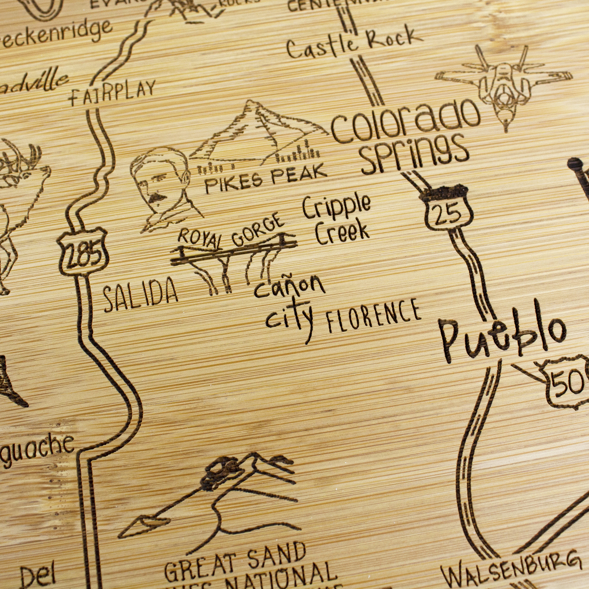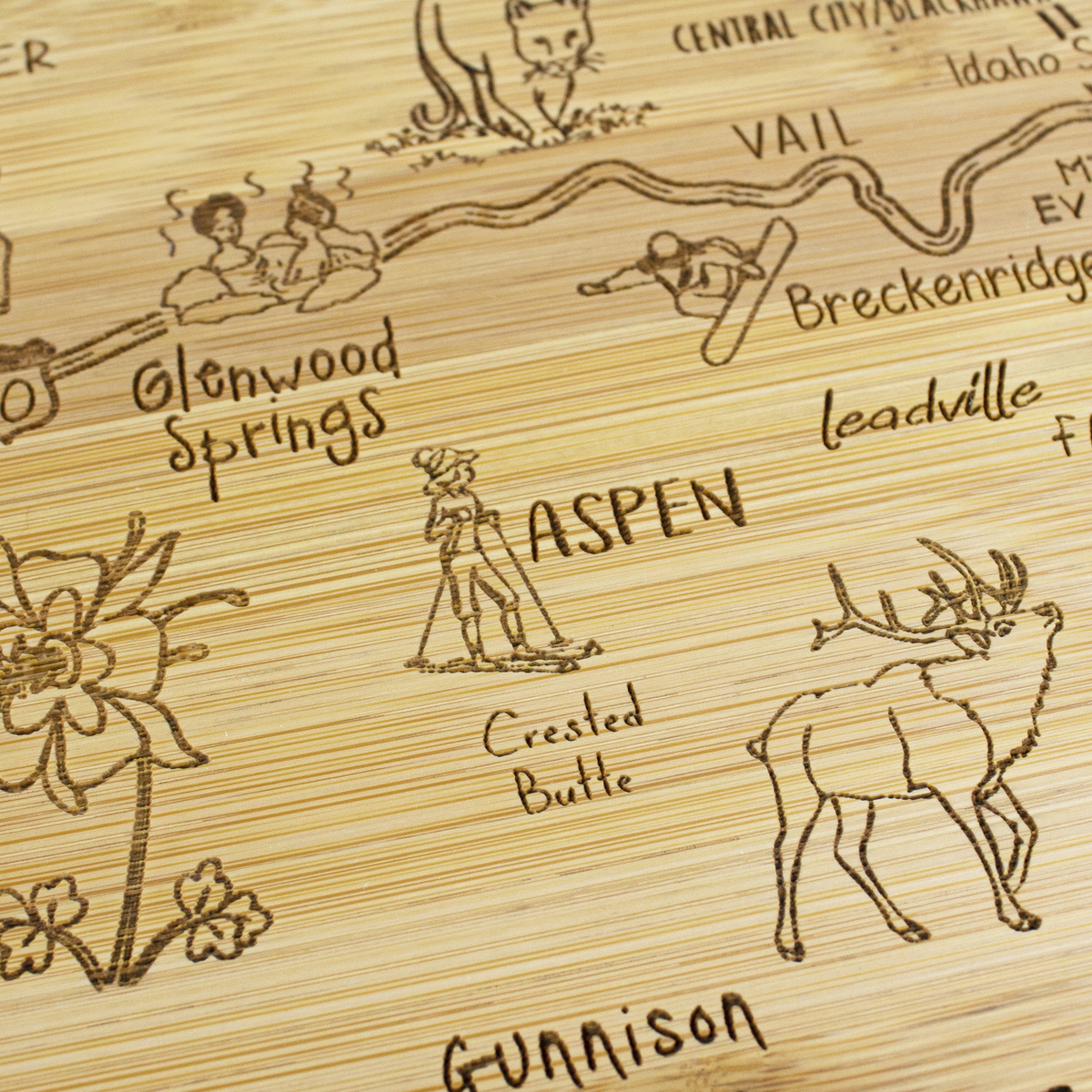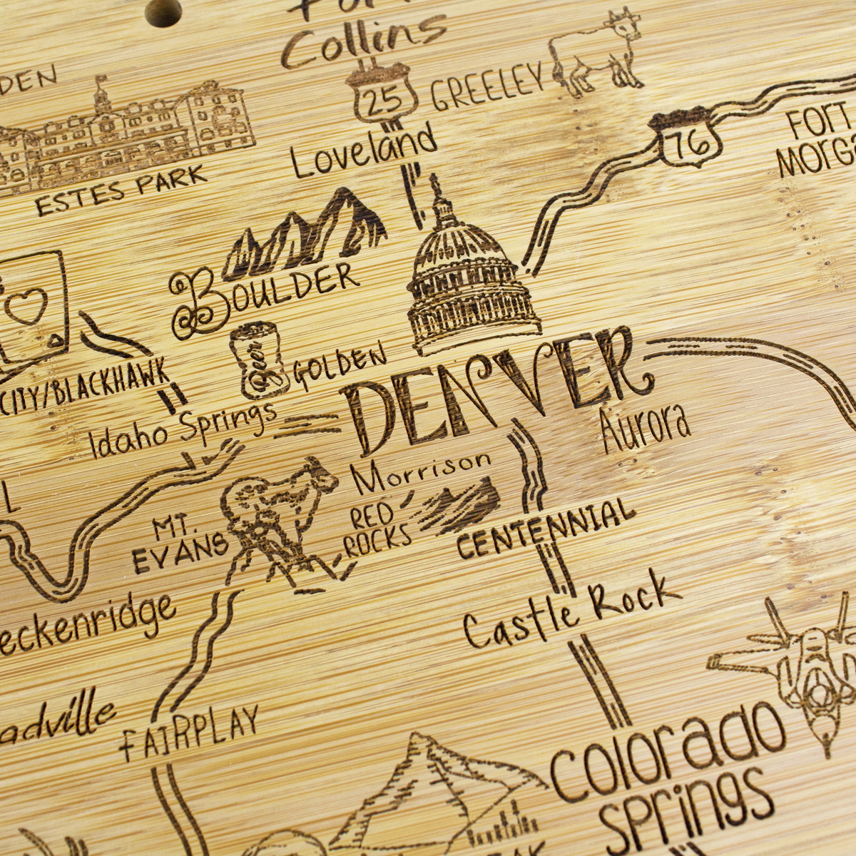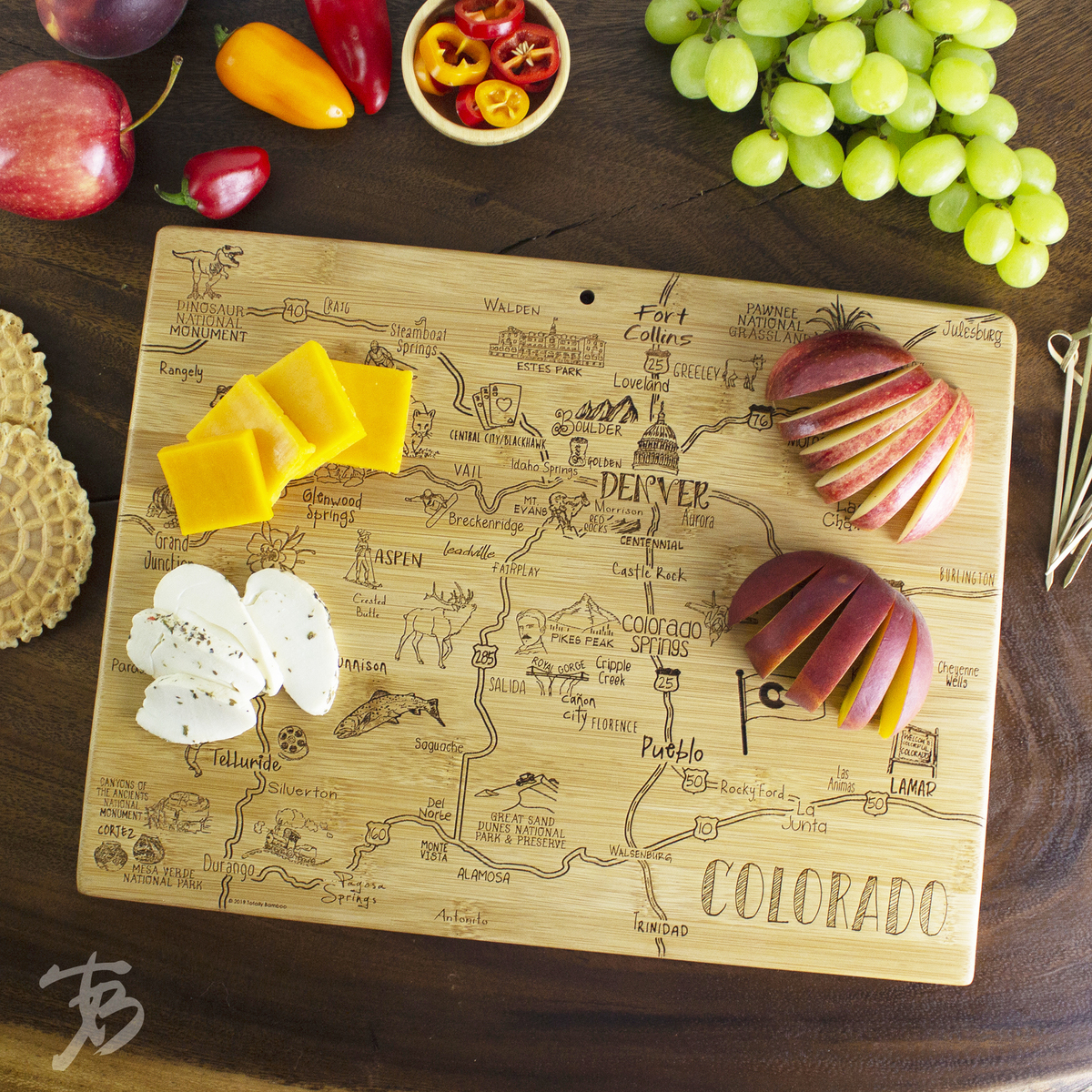 The Destination Series highlights the unique flavor and experiences of every state. The fun, laser-engraved artwork calls out the towns, places and attractions that make each place special. These versatile boards work well as a serving board, a cutting surface or hanging as wall decor with the included hang tie. The line includes every US state, the Hawaiian Islands, Mexico and several Canadian provinces. Boards can be further engraved on the back with a logo.
