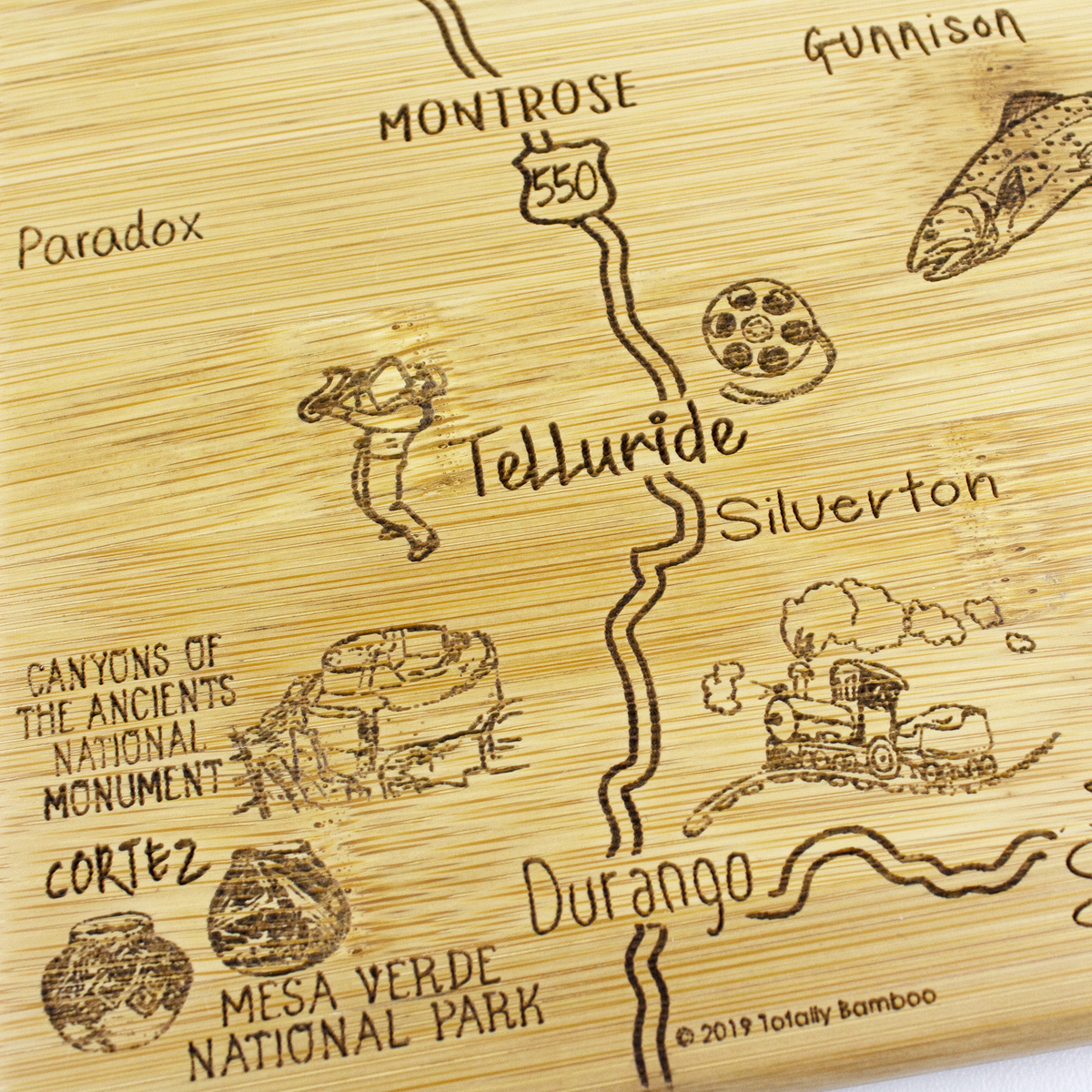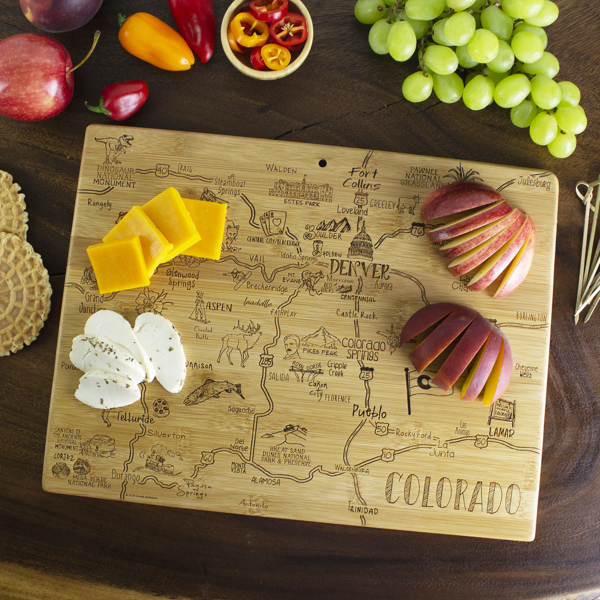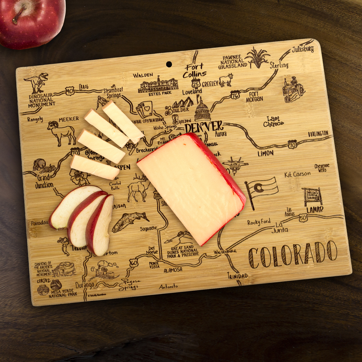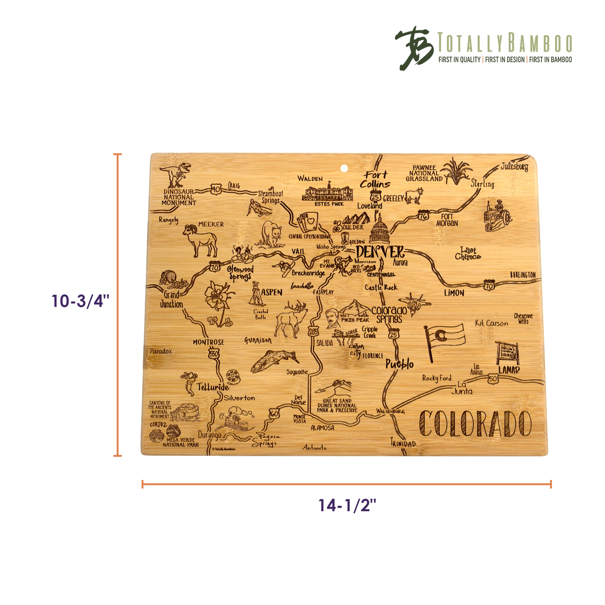 The Destination Series highlights the unique flavor and experiences of every state. The fun, laser-engraved artwork calls out the towns, places and attractions that make each place special. These versatile boards work well as a serving board, a cutting surface or hanging as wall decor with the included hang tie. The line includes every US state, the Hawaiian Islands, Mexico and several Canadian provinces. Boards can be further engraved on the back with a logo.