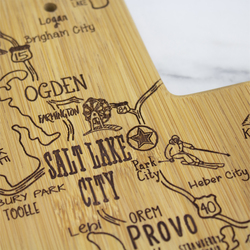 The Destination Series highlights the unique flavor and experiences of every state. The fun, laser-engraved artwork calls out the towns, places and attractions that make each place special. These versatile boards work well as a serving board, a cutting surface or hanging as wall decor with the included hang tie. The line includes every US state, the Hawaiian Islands, Mexico and several Canadian provinces. Boards can be further engraved on the back with a logo.