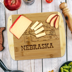 • Savor a slice of The Cornhusker State with this beautiful bamboo serving and cutting board with artwork inspired by the cities, places and people of Nebraska.