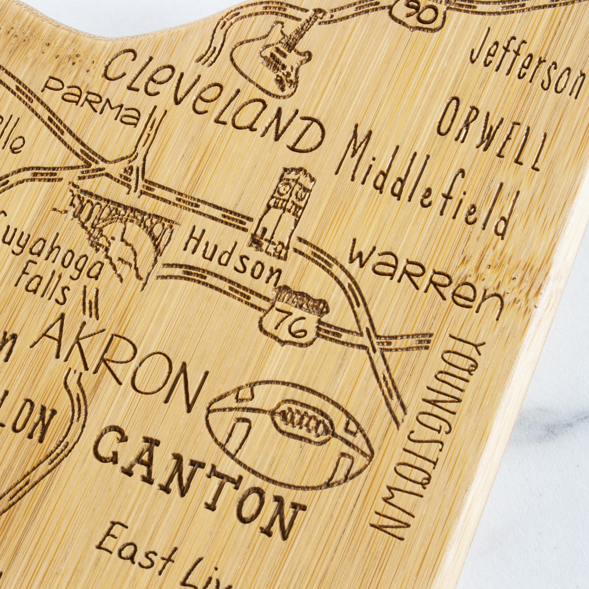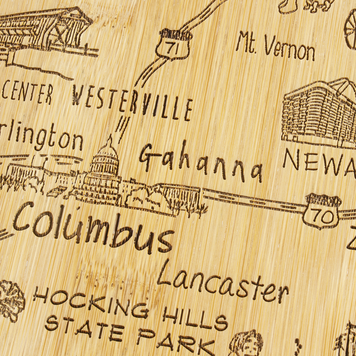 The Destination Series highlights the unique flavor and experiences of every state. The fun, laser-engraved artwork calls out the towns, places and attractions that make each place special. These versatile boards work well as a serving board, a cutting surface or hanging as wall decor with the included hang tie. The line includes every US state, the Hawaiian Islands, Mexico and several Canadian provinces. Boards can be further engraved on the back with a logo.
